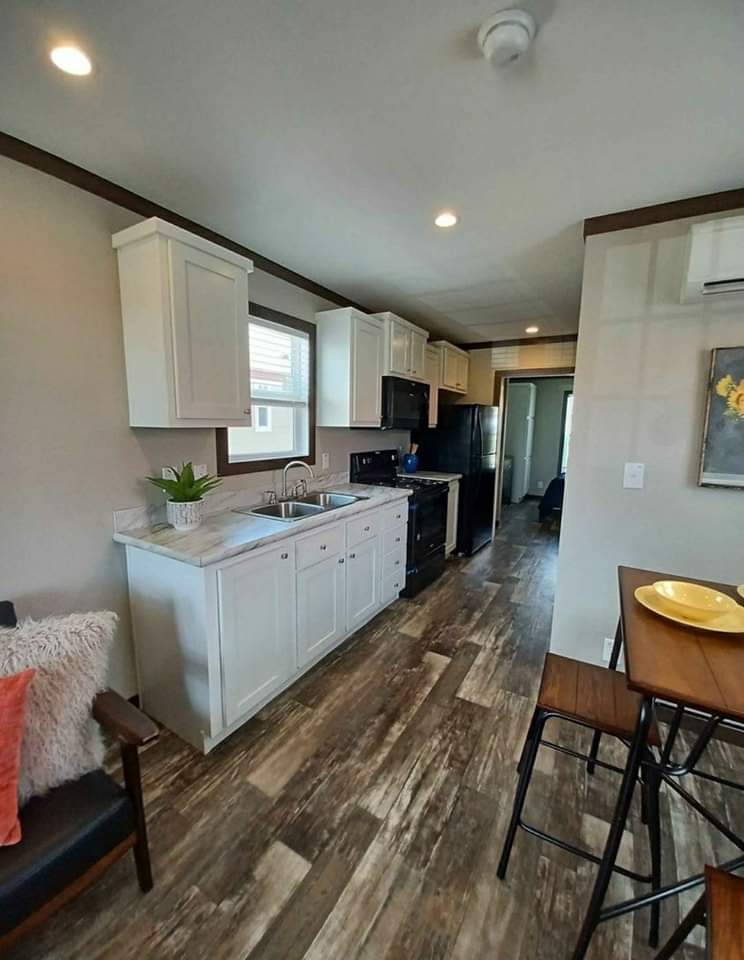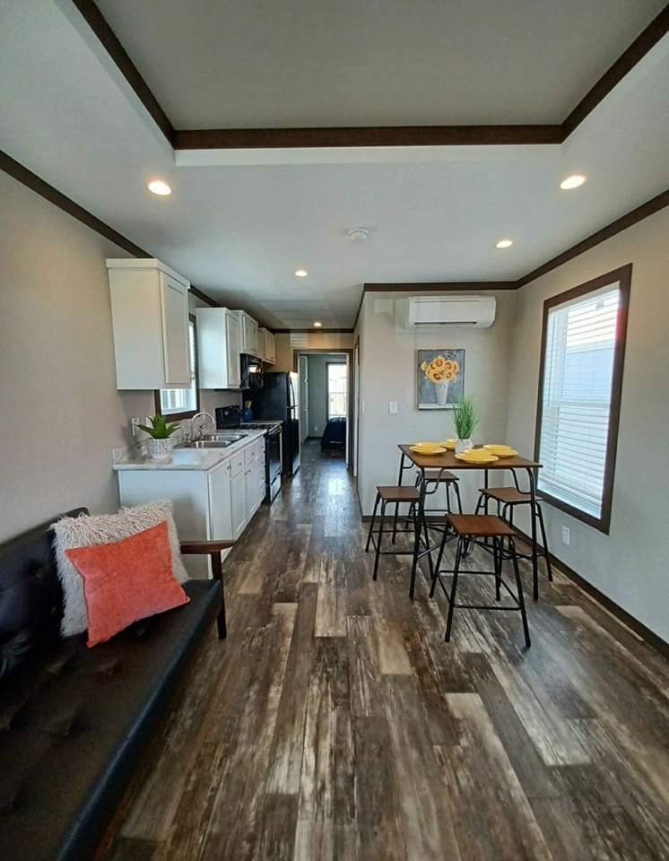 This amazing new 1 bedroom 1 bath tiny home with a loft is priced to sell quickly. I can also help with delivery and set up if needed. It’s an 11 ft x 35 ft true park model tiny home built by Platinum Cottages. Everyone looks for a layout which comfortably and efficiently supports life’s activities in the provided 399 square feet, this is it! With 100 amp service, full sized fridge and stove built with ample storage, a 8 ft porch and copper metal roof this home will last a lifetime and is set up great for both full time living or as a weekend get away.