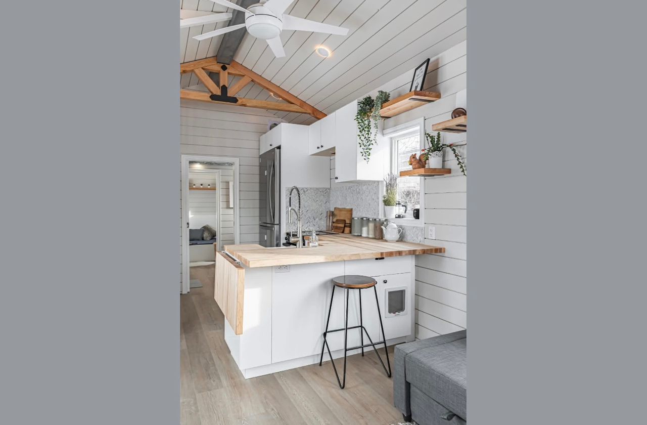 Acorn Tiny Homes brings to life the Paradise Paddock, an expansive 436 square-foot tiny home set on an overwidth trailer. Measuring 38′ x 10′ 6” x 13′ 6”, this home is tailored for up to 3 occupants.